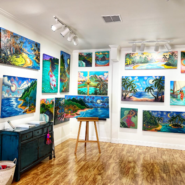 If you're visiting Kim’s gallery in Paia and fall in love with a piece, there’s no need to worry about fitting it in your suitcase. Whether it's an original or a print, Kim and her team will ship it directly to your home for free — anywhere in the United States, including Hawaii.